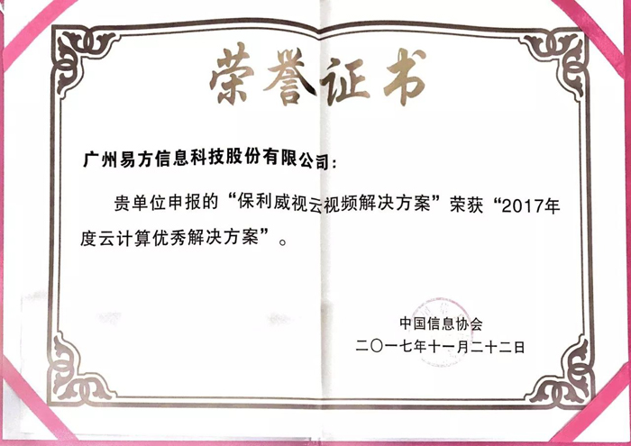 2017年11月23日,國內(nèi)領(lǐng)先的云視頻服務(wù)商 — 廣州易方信息科技股份有限公司(以下簡稱“易方信息”)攜行業(yè)領(lǐng)先的企業(yè)級(jí)云視頻解決方案參加“2017中國云計(jì)算方案大會(huì)”,憑借先進(jìn)的產(chǎn)品技術(shù)和成熟的企業(yè)級(jí)云點(diǎn)播、云直播服務(wù)榮獲“優(yōu)秀解決方案”獎(jiǎng)項(xiàng)。