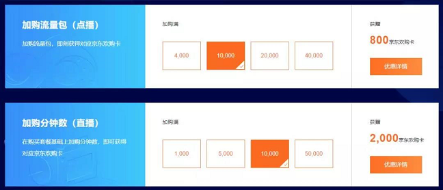 加購分鐘數(直播),在購買套餐基礎上加購分鐘數,可獲得對應京東歡購卡。