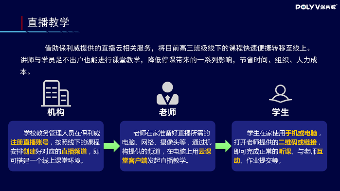 武漢肺炎疫情仍在持續,導致多家公立學校緊急叫停線下教學課程,保利威啟動應急教學直播方案,提供線上直播服務,全力保障教學工作有序進行。
