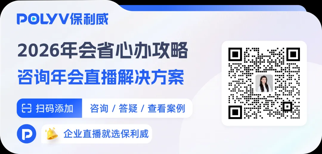 添加保利威專屬顧問,即可免費領取《2026年會直播解決方案》,含異地多會場落地指南、主題方案等,精準適配行政籌備需求!