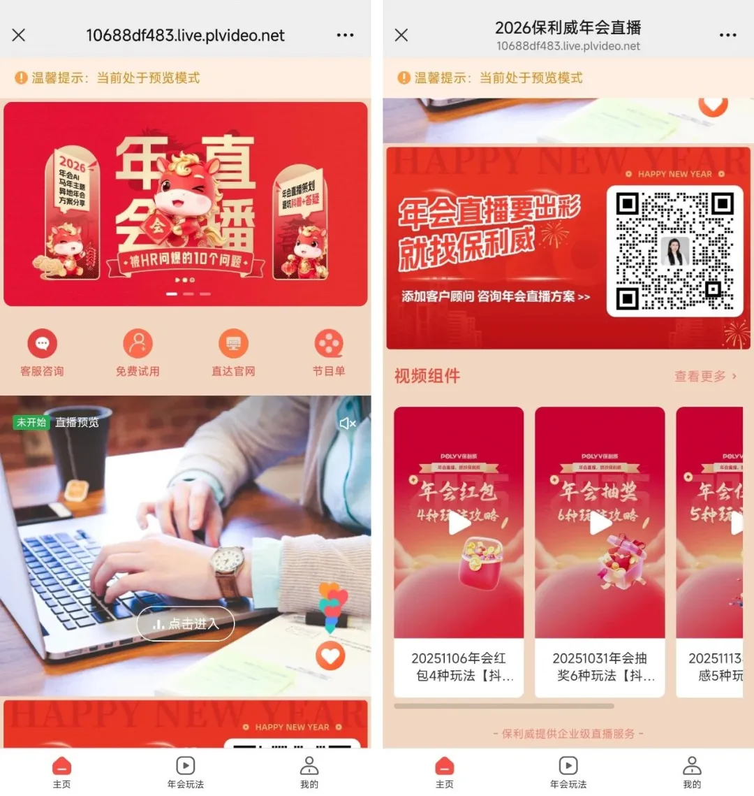 從直播間搭建、互動設計到現場執行,保利威一站式方案助你年會直播籌備效率翻倍,讓你有更多精力打磨年會細節。省心辦年會,就找保利威!