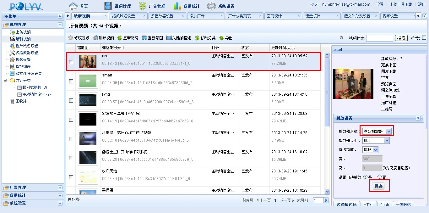 操作方法:選中視頻,在右側(cè)播放設(shè)置窗口中選擇播放器,點(diǎn)擊保存后生效。