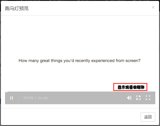 (2)當選擇【按授權用戶名】時,頁面會按白名單觀看的驗證信息或者自定義授權的觀眾名稱顯示跑馬燈,起到追溯盜錄視頻者以及證據留存的作用。效果圖如下: