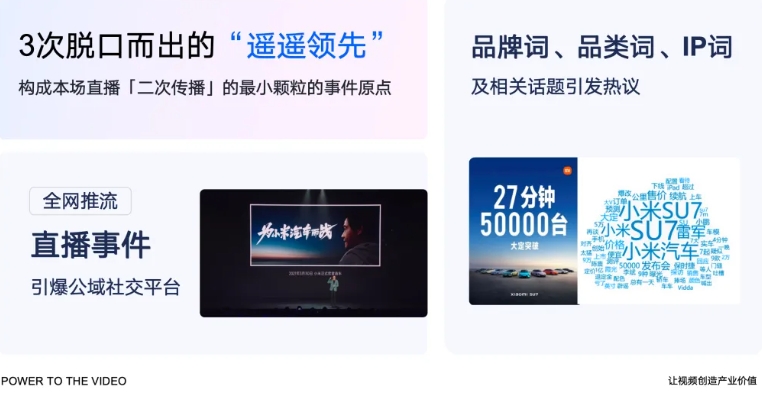 回顧剛剛結束的2024上半年,不難發現當前企業直播營銷場景正在發生著積極的變化,3月下旬小米Su7發布會全網直播,27分鐘賣出5W臺,正式宣告小米進軍汽車領域。