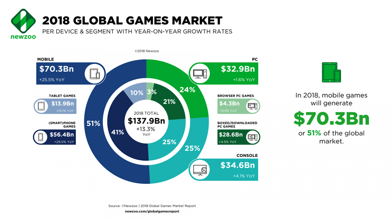 2018 全球游戲市場概覽 | 來源:Newzoo