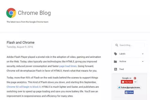 但事實上,更重要的是新版的Chrome默認已經不再加載Flash插件,這意味著,視頻網站如果必須需要Flash的支持,必須用戶主動去點擊選擇開啟,或在設置開啟支持Flash功能支持,否者頁面內的Flash內容是不會自動播放。