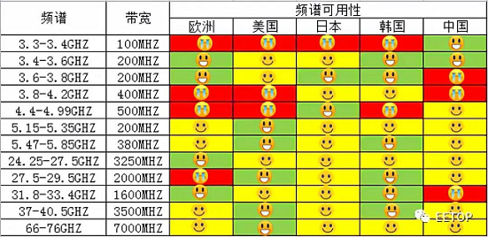 然而,我們上表就可以看到,可供選擇的頻段其實并不多,現網也就2.6GHz、3.5GHz以及4.9GHz。首先4.9GHz從覆蓋性能和全球產業鏈成熟度而言(參考下圖),就只適合做一個容量的補充,而非用來作為覆蓋的主力。