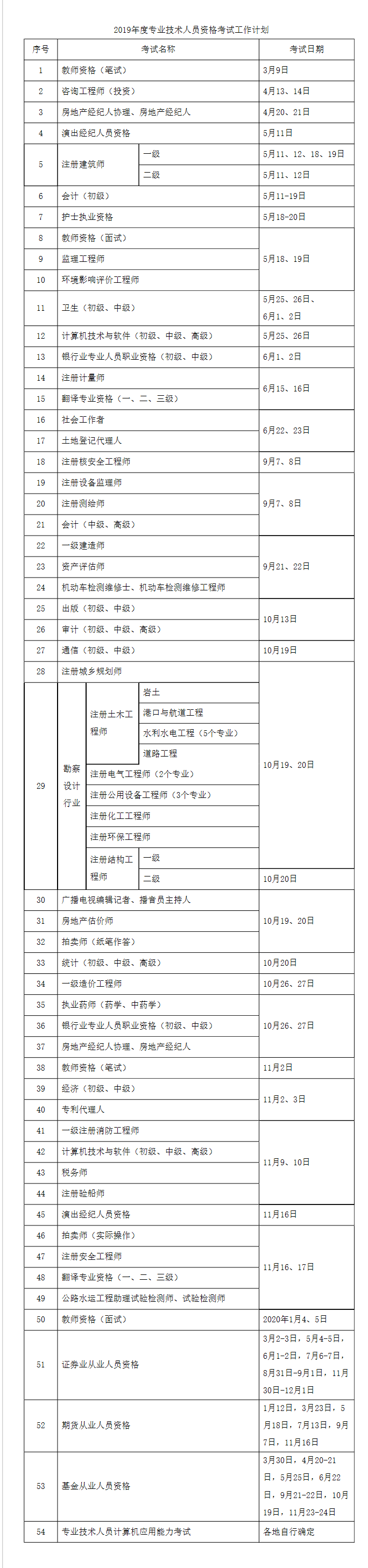 2019年度專業(yè)技術(shù)人員資格考試工作計劃