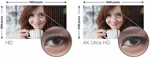 一般而言,4K的分辨率是3840*2160,而1080P的分辨率是1920*1080,故此前者分辨率是后者的4倍,圖像大小也是后者的4倍。那么,4K與普通高清,比如1080P相比,僅僅是圖像大小的升級嗎?