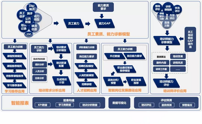 弘成智能推課即基于能力診斷為核心,邏輯一邊是員工能力診斷,一邊是個(gè)性化課程方案,中間以能力素質(zhì)模型為紐帶,連接崗位和內(nèi)容,同時(shí)加入人工智能算法,實(shí)際就是依賴(lài)大數(shù)據(jù)分析。分析企業(yè)員工各類(lèi)數(shù)據(jù),包括個(gè)人信息、成長(zhǎng)數(shù)據(jù)、學(xué)習(xí)培訓(xùn)數(shù)據(jù)、個(gè)人發(fā)展計(jì)劃,還有語(yǔ)義分析,360度測(cè)評(píng)個(gè)人相較崗位所要求具備的能力有哪些缺失之處,進(jìn)而進(jìn)行針對(duì)性的智能推課。