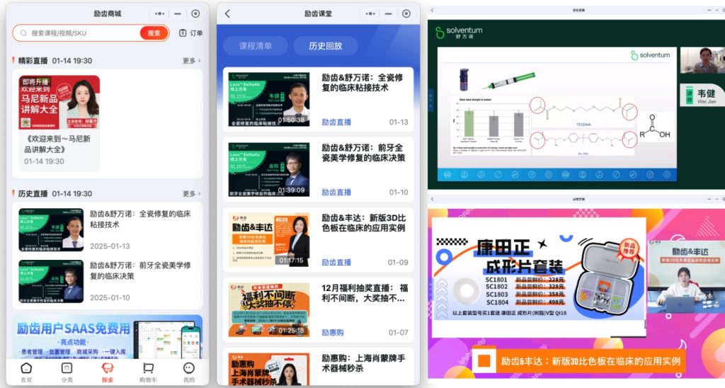 企業(yè)希望在其APP、小程序中上線直播能力,通過與口腔器械&耗材品牌合作,開啟知識科普+直播帶貨模式直播營銷,一方面激活勵齒APP存量用戶,增強(qiáng)用戶的粘性和忠誠度,另一方面拓展新的銷售渠道,增加營銷觸點、提高銷售轉(zhuǎn)化率。